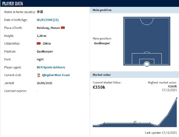 另外志在冲击中超冠军的浙江队也对这名天赋出色的小门将很有兴趣,下赛季李昊将会为哪支球队守门,当前还无法确定。